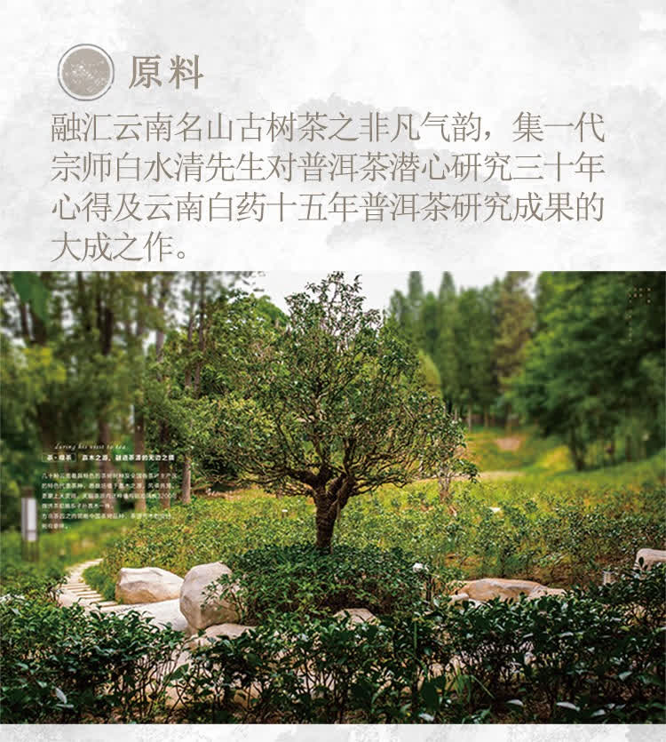 这款茶的底气,硬得很。 它融汇了云南名山古树的非凡气韵,由一代宗师白水清先生(潜心研究普洱三十年)与云南白药(十五年普洱茶研究成果)联合打造。